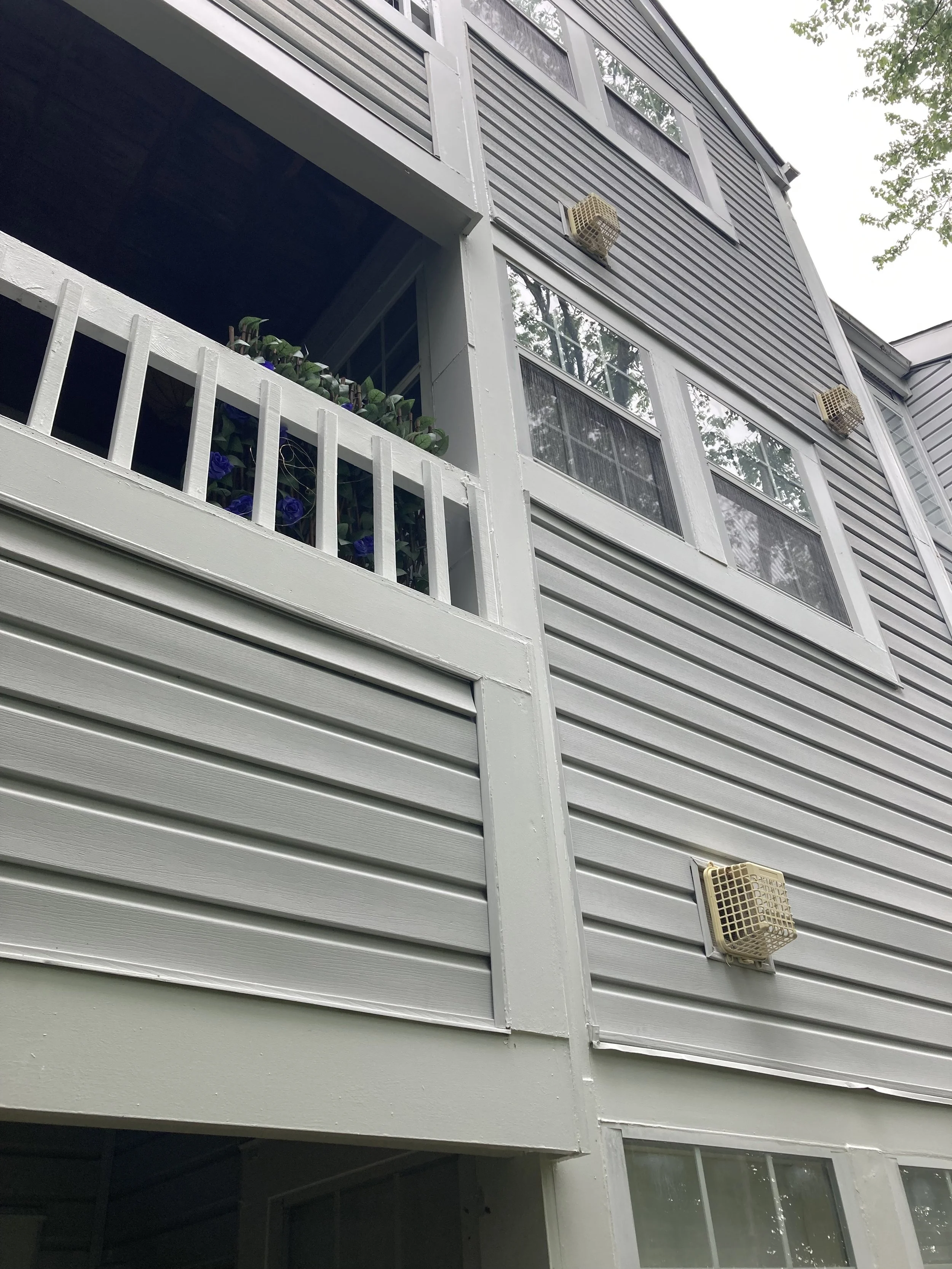 Middledorf completed a comprehensive exterior painting and trim replacement project designed to restore and protect the property’s appearance and integrity. The work began with a full power wash of the siding, trim, soffits, and fascia to remove dirt and prepare surfaces for painting. We replaced areas of rotten wood with durable PVC trim boards, ensuring long-term protection from moisture and weathering. All new PVC was primed and caulked with high-performance materials before receiving a fresh coat of exterior latex semi-gloss paint to match existing colors. Additional work included scraping, sanding, and spot priming areas with loose paint, refinishing front doors, painting shutters, and restoring front metal railings with proper surface prep, priming, and oil-based coatings. The result is a clean, refreshed exterior with improved durability and lasting curb appeal.